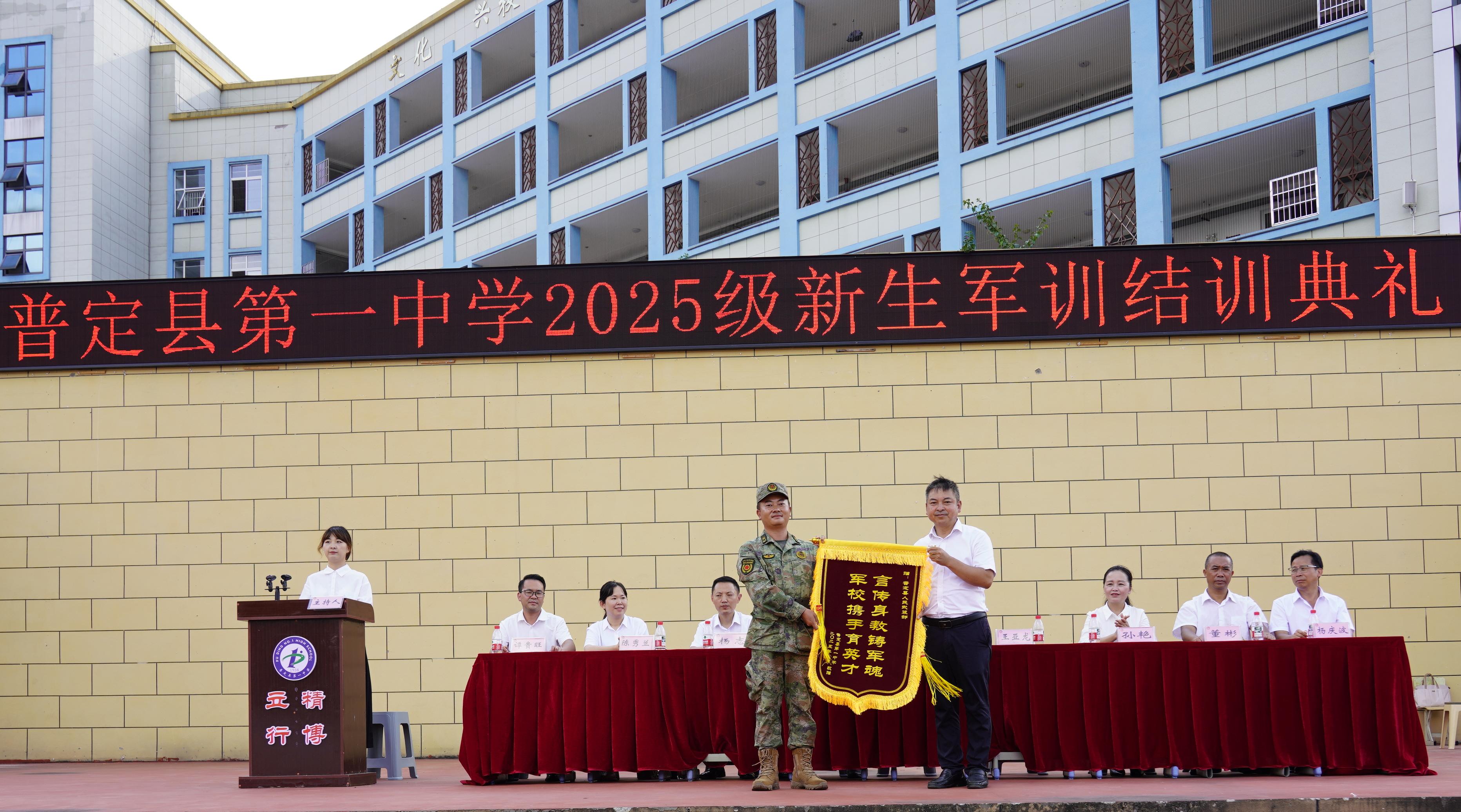 军训的圆满成功,离不开承训单位——县人武部的大力支持和全体教官的辛勤付出。为表达诚挚的谢意,华逢礼校长代表学校向县人武部赠送锦旗,锦旗虽轻,情谊却重,它承载着学校对承训单位崇高敬意和军民携手、共育英才的深厚情谊。