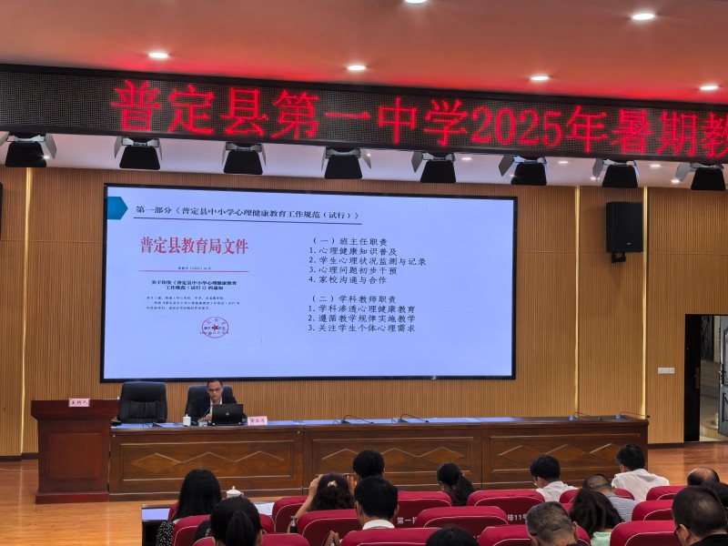 “问渠那得清如许?为有源头活水来。” 教育之泉,因教师的持续成长而常新;育人之路,因专业能力的迭代而宽广。为进一步提升我校教师专业素养和育人本领,扎实推进教师专业发展,进一步适应现代教育发展的要求和变革,2025年8月22日至23日,普定县第一中学开展为期两天的全校教师暑期集中培训。本次培训以课题申报、心理护航、技术运用、专业发展、师德铸魂五大模块为核心,为教师成长注入“活水”。